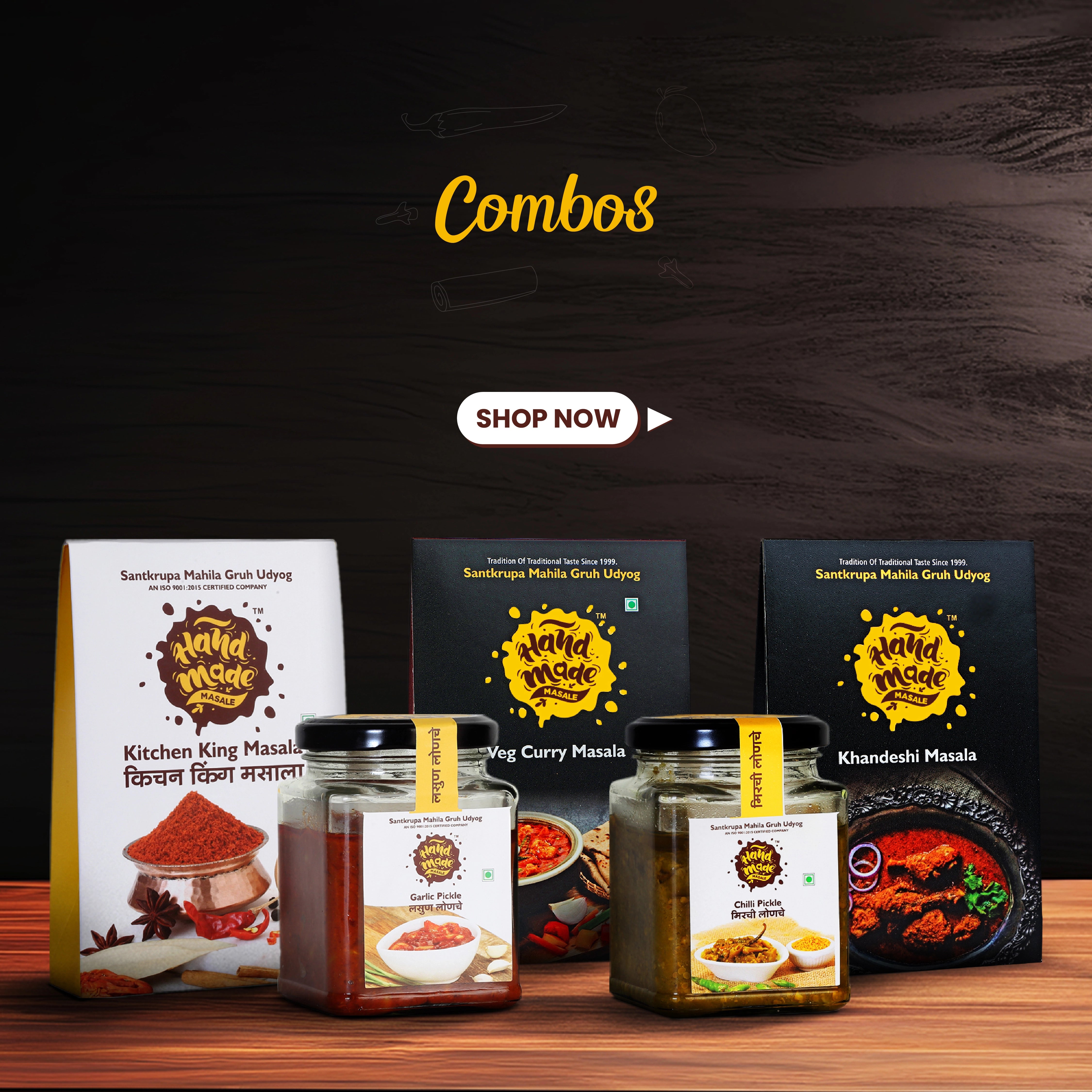 At Handmade Masale, we bring you authentic Maharashtrian flavors made with pure, natural ingredients. What began as a small women-led initiative has grown into a journey of preserving tradition while serving homes across India. Every spice blend and snack is prepared with care so you can taste the warmth of heritage in every bite.