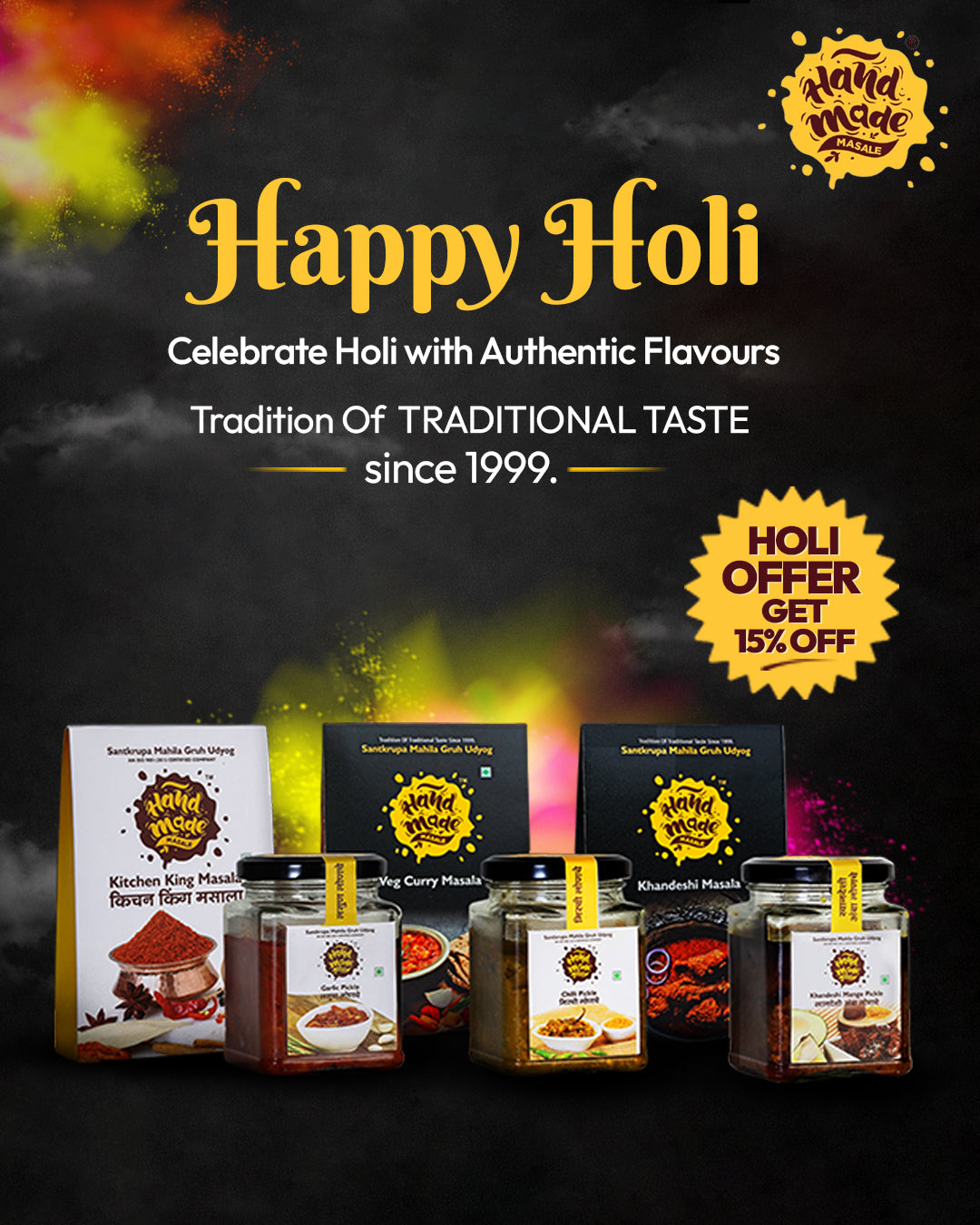 Handmade Masale now operates over 80 outlets, offers franchise opportunities, and delivers across India. With an expanded range of spices, pickles, oils, and snacks, it remains rooted in authenticity and women-led empowerment.