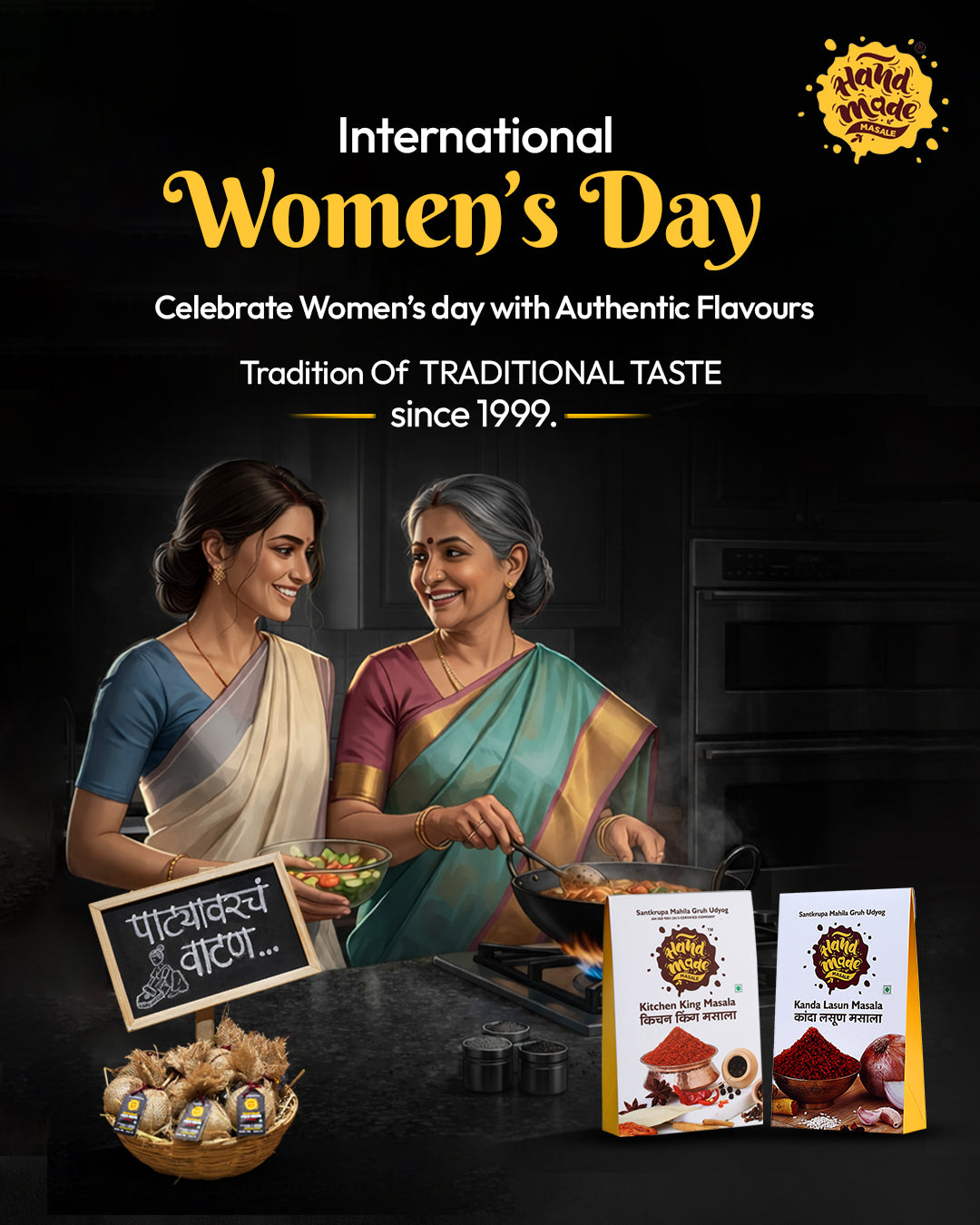 Handmade Masale was founded by Sant Krupa Mahila Gruh Udyog, a women’s self-help group. They started by making traditional spices at home and delivering them door-to-door, bringing authentic flavors to local families.