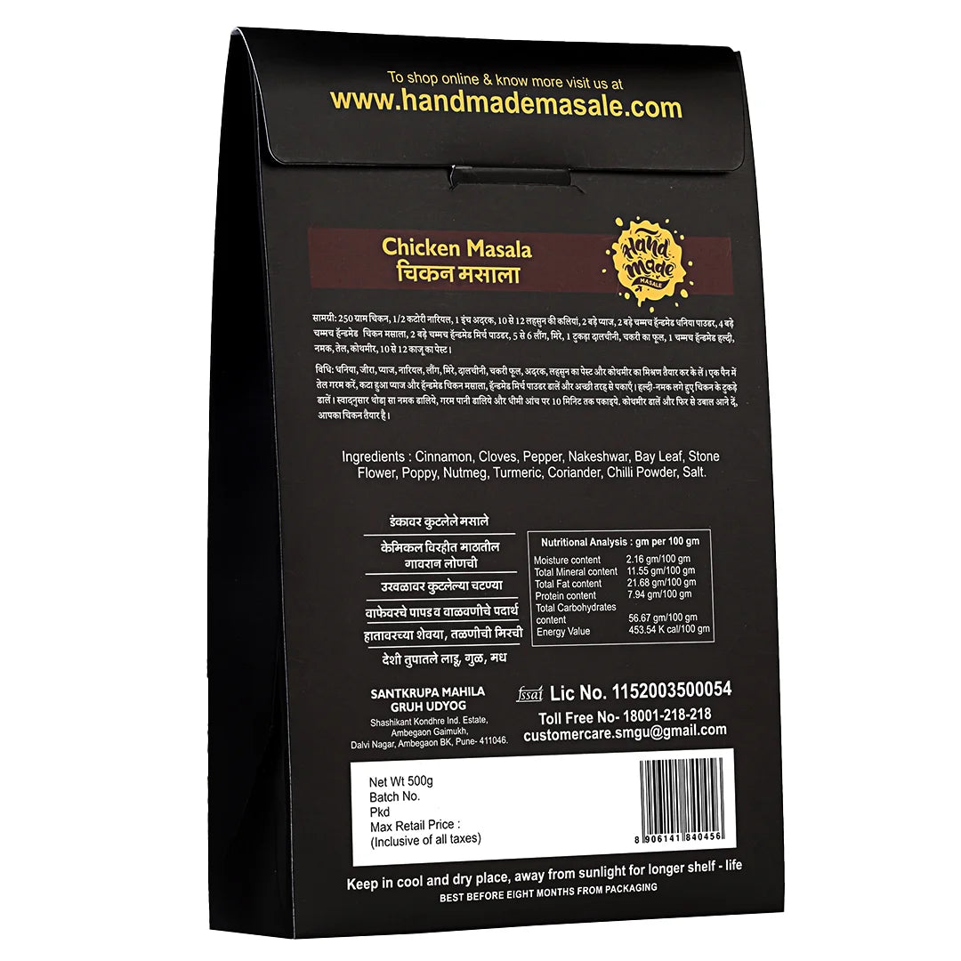 • Create delicious, authentic chicken curries with Handmade Masale's premium Chicken Masala. This handcrafted spice blend offers rich flavor, perfect for Indian cooking.