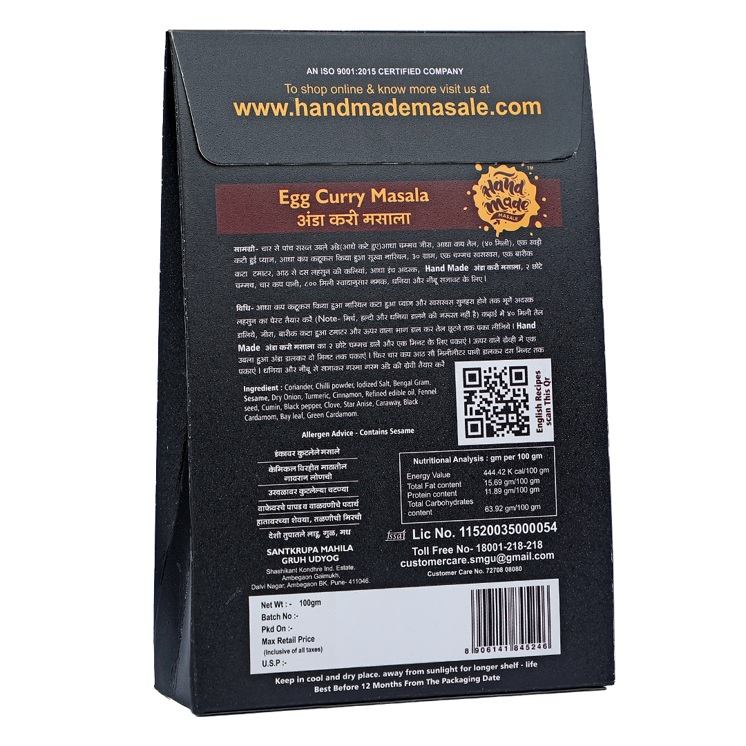- Made in Maharashtra, Loved Everywhere: Handmade Masala has grown from a door-to-door venture to over 80 outlets. Now, experience the magic of Maharashtrian spices and create restaurant-worthy egg curries in your own kitchen.