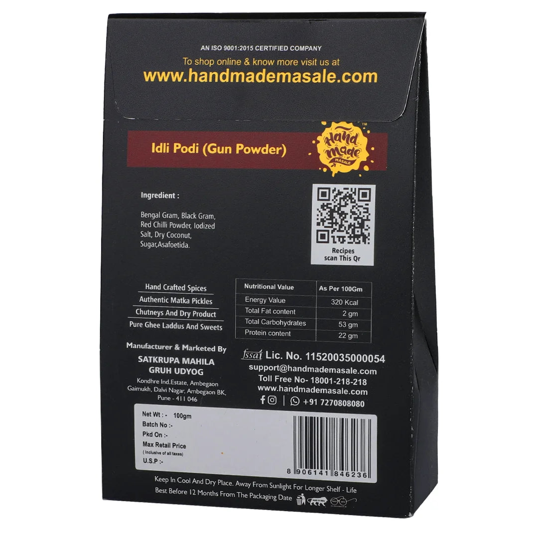 - Elevate your breakfast with Handmade Masale's authentic Idli Podi / Gun Masala. This premium, handcrafted spice blend adds a burst of flavor to Idlis, Dosas & more.