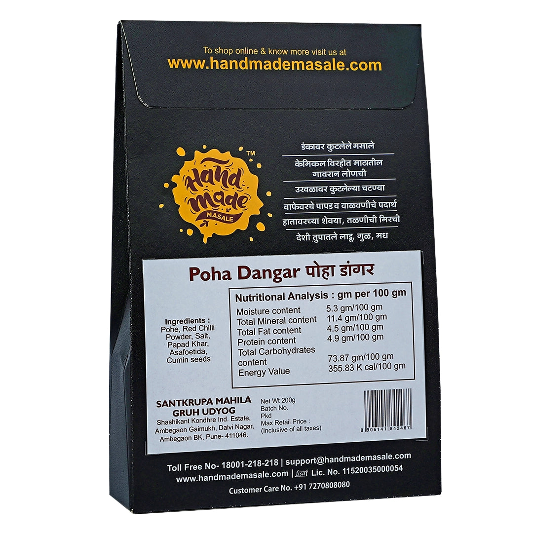- No Preservatives, All Natural: Committed to quality and purity, we use no preservatives in our Masale Instant Poha dangar. Savor the fresh taste and wholesome ingredients in every bite.