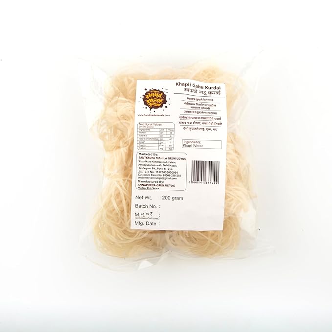 - Wholesome & Preservative-Free: Made with the finest ingredients and following time-tested recipes, our Khapali Gahu Kurdai is free from preservatives, ensuring a healthy and delightful snack for you and your family.