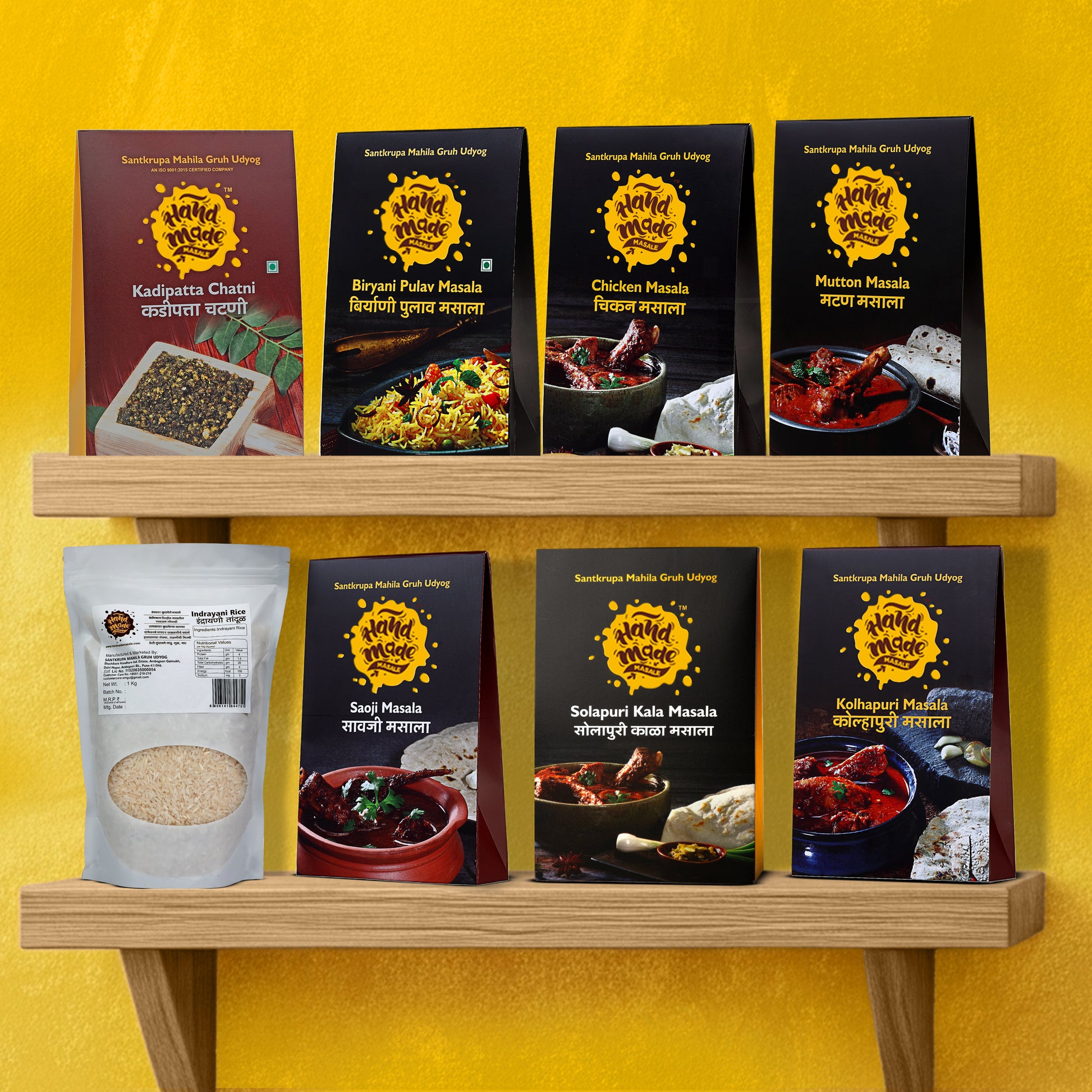 Experience the bold and authentic flavors of Maharashtra in one powerful combo! This Combo is a handpicked assortment of our best-selling masalas, chutneys, pickles, rice, and papad—crafted to turn every meal into a grand feast. This Combo brings together 10 essential items to elevate your daily meals.