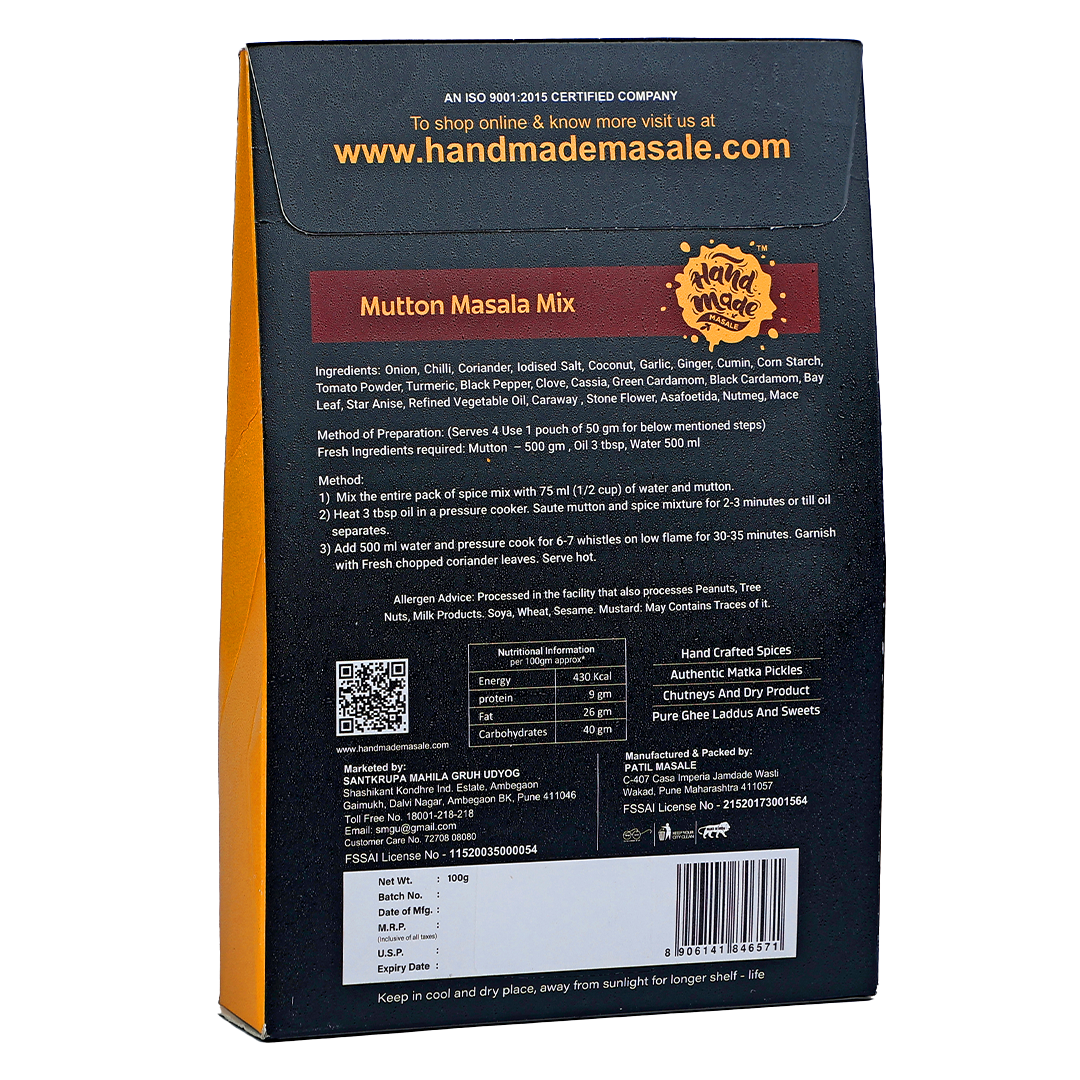 - Versatile Usage – Ideal for making Mutton Curry, Mutton Handi, Mutton Korma, Mutton Sukka, or even spicy gravies for goat, lamb, or chicken dishes.