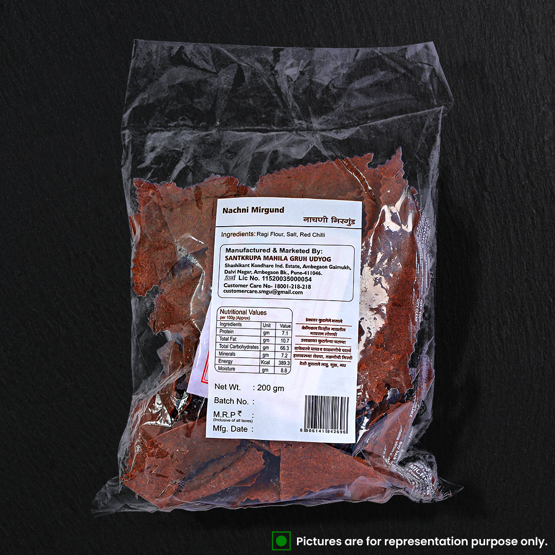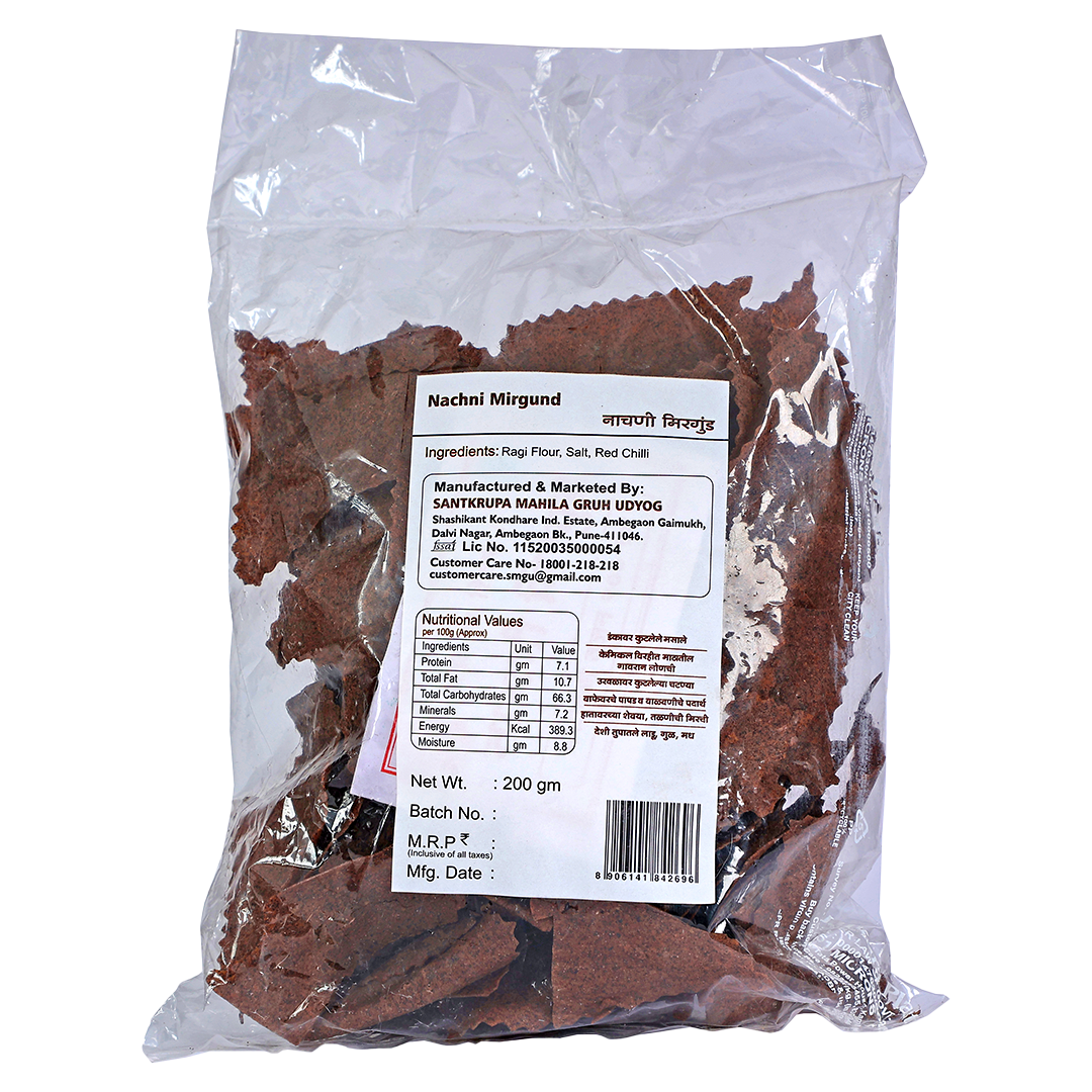 - Authentic Flavors: Made by Sant Krupa Mahila Udyog, a women-led self-help group founded in 1999. Our Nachani Mirgund is crafted using traditional methods, bringing you the taste of homemade goodness.