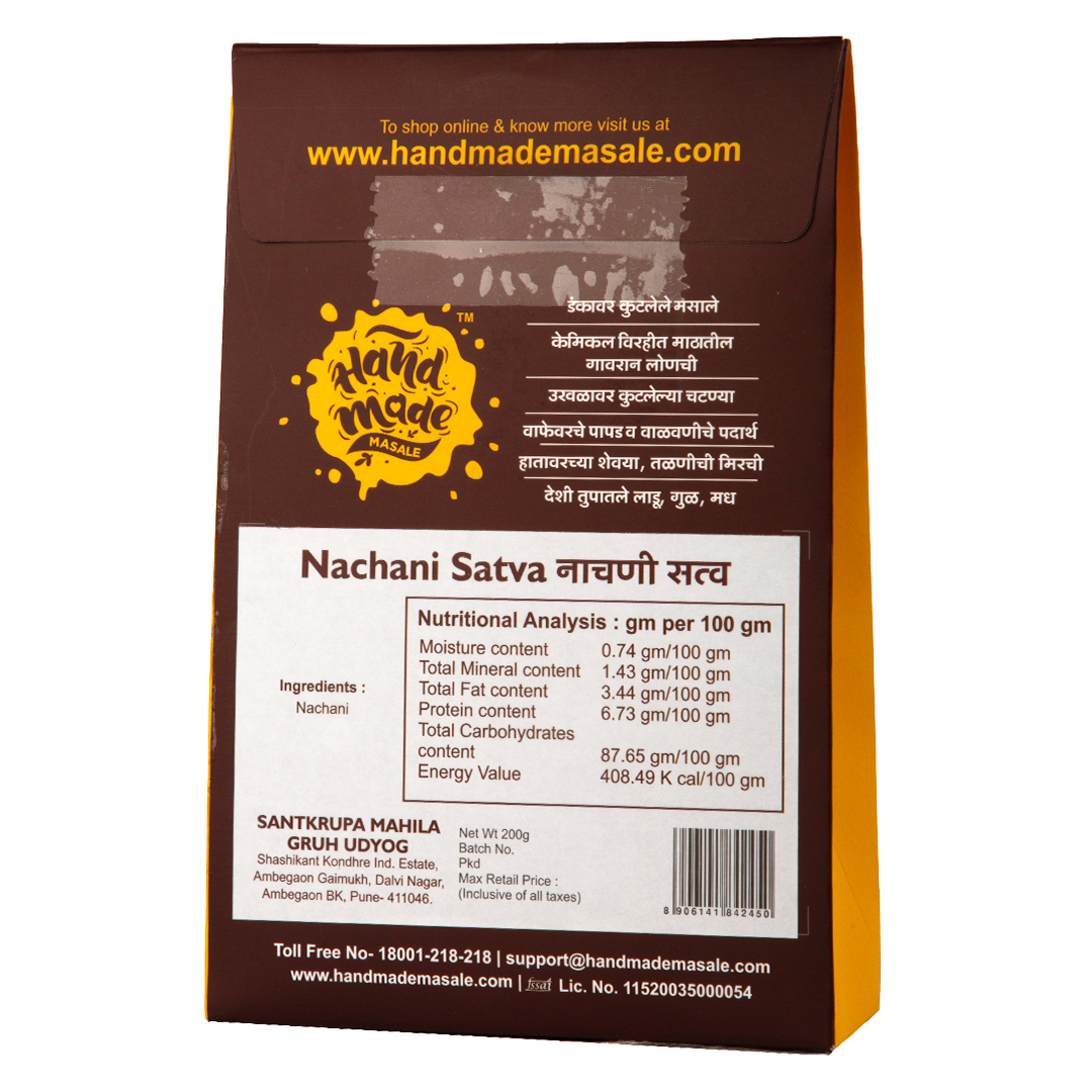 - Experience the Difference: Enjoy the rich taste and wholesome goodness of our Handmade Masale Nachani Satv. Perfect for a variety of dishes, it adds a touch of tradition to your everyday meals.
