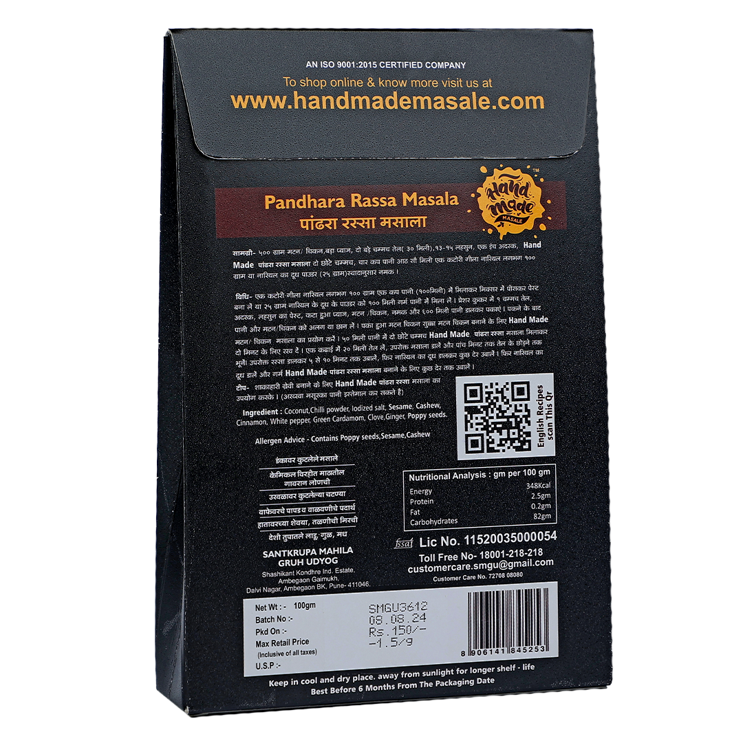 - Made in Maharashtra, Shared with You: Handmade Masala has grown from a humble door-to-door venture to over 80 outlets. Now, experience the magic of Maharashtrian spices and recreate the creamy delight of Pandhra Rassa in your own kitchen.