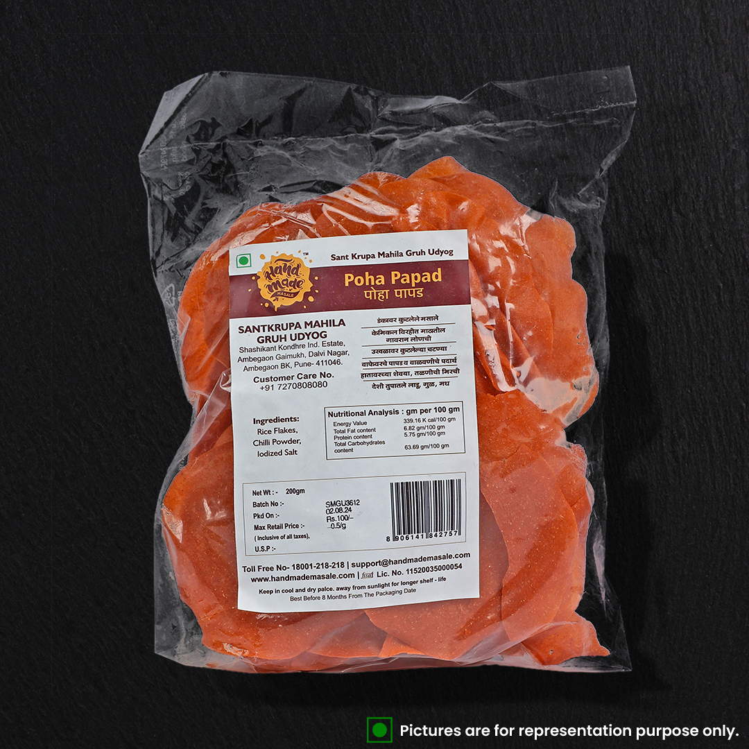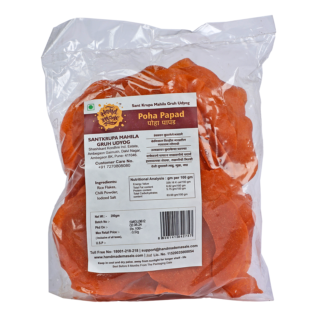 - Enjoy the light, crispy goodness of Handmade Masale's Poha Papad. Made with authentic ingredients, this premium, handcrafted snack is perfect for every Indian meal.