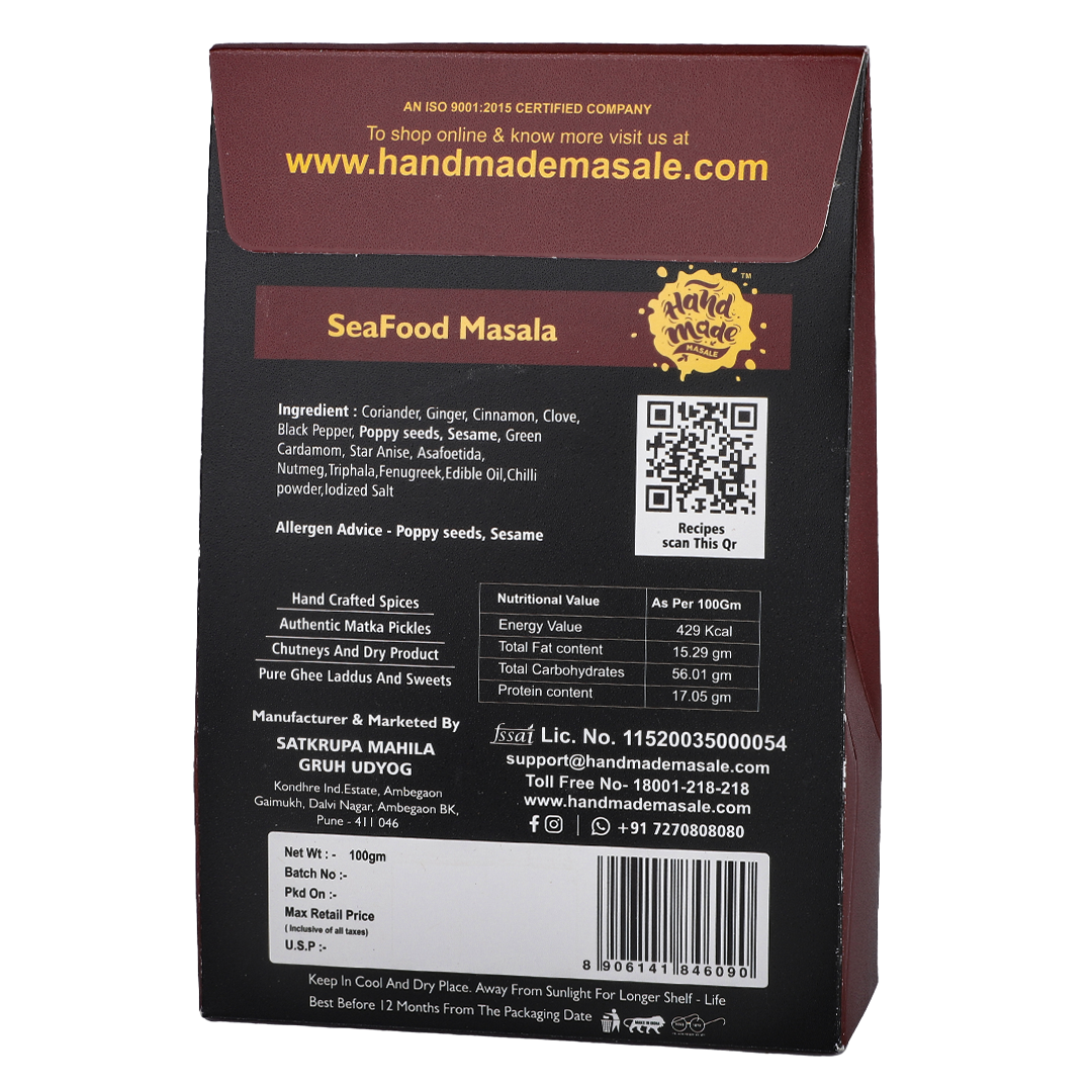 - Delightful Seafood Feasts: Handmade Masala, established in 1999 by Sant Krupa Mahila Udyog, a women's self-help group, brings you traditionally crafted Seafood Masala. Support women entrepreneurs and enjoy restaurant-worthy flavor in your seafood dishes made with love.