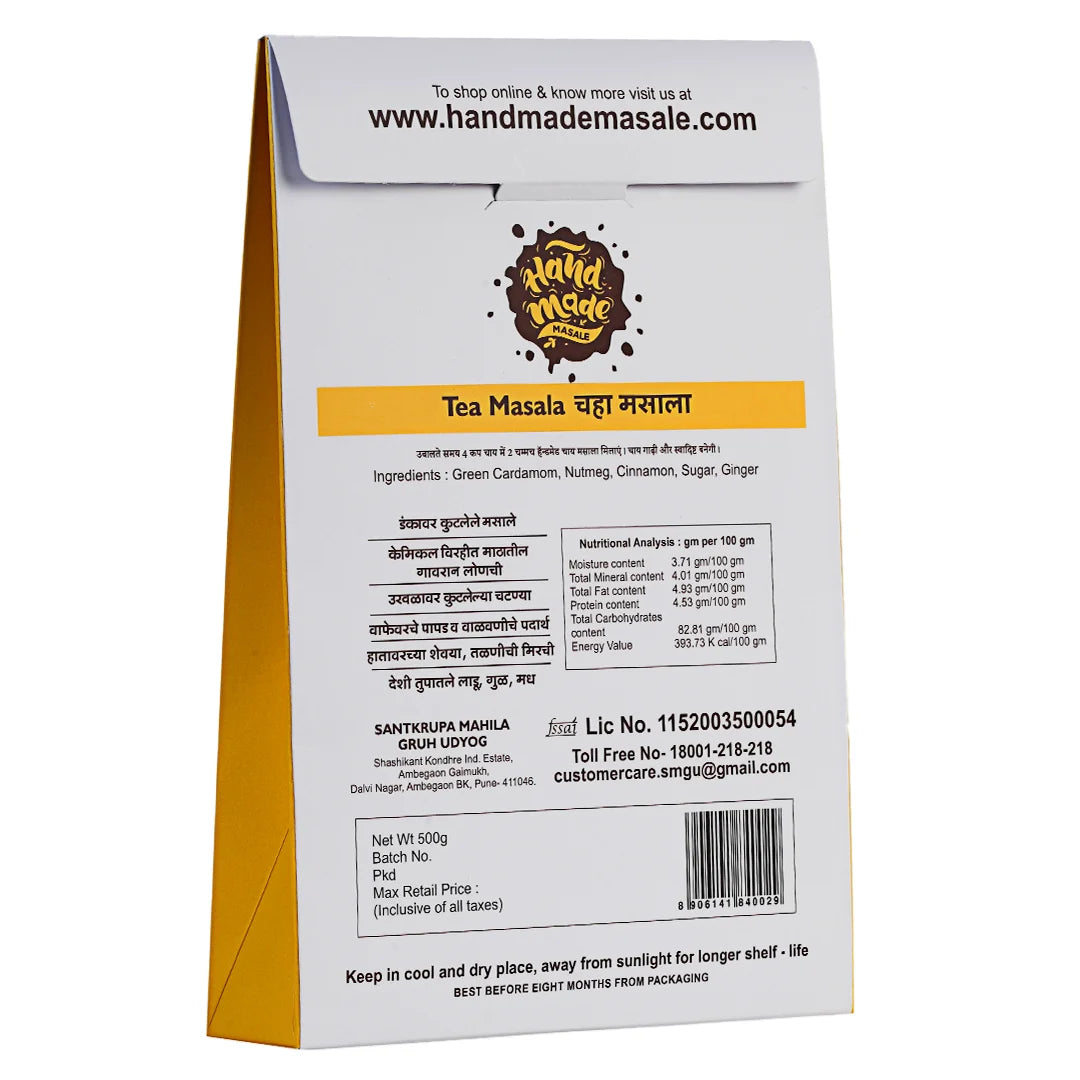 - Steeped in Tradition: Handmade Masala, established in 1999 by Sant Krupa Mahila Udyog, a women's self-help group, brings you a taste of heritage in every cup. Support women entrepreneurs and sip on a cup of chai crafted with our traditionally made Tea Masala.